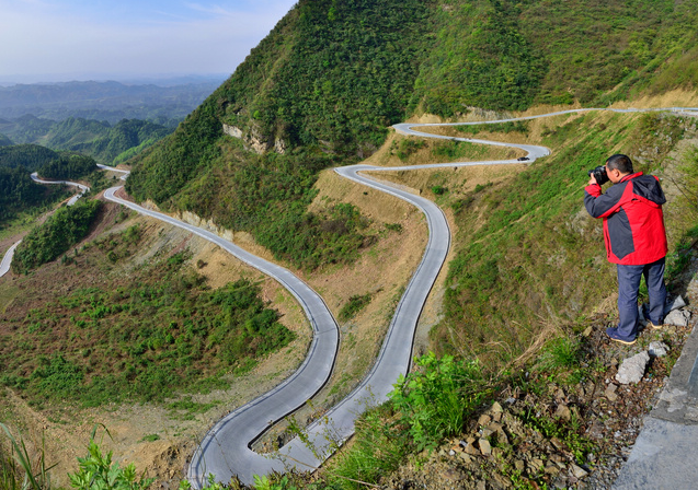 45道拐是平川公路的一段,连接洪安古镇和川河盖景区。此段公路全长10 公里,海拔从625 米骤升到1175 米,坡陡、弯多、拐急,共计45道,堪称“重庆公路弯道之最”,被称为飘浮云端的“天路”,是真实版的山路十八弯。沿着“天路”盘旋而上,一路美景目不暇接,2016年被评为“重庆十大最美乡村公路”。