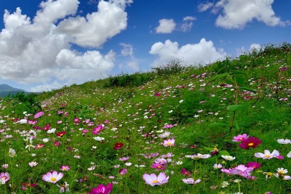 草场花海占地面积约400亩,平均海拔1200米,为天然高山草甸草场。四季的草场,各有精彩。春天,草场是杜鹃花的海洋,一簇簇,一丛丛,张扬着生命的激情。夏日,策马、骑行、奔跑、野营……仿佛置身在塞外的草原。秋天,盖上芭茅像朵朵柳絮,在空中轻飘漫舞,妆点苍茫的大地;冬季,草场铺上雪毯,川河盖银装素裹,一片雪域高原的景象。草场中心有英文的“Love”(爱)造型的布景,是年轻情侣、夫妻表述情意的圣地,是拍写真、婚纱照的绝佳场地。