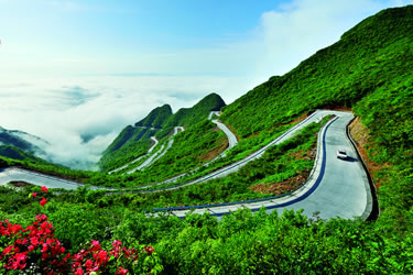 45道拐是平川公路的一段,连接洪安古镇和川河盖旅游度假区。此段公路全长10 公里,海拔从625 米骤