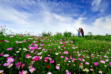 草场花海占地面积约400亩,平均海拔1200米,为天然高山草甸草场。四季的草场,各有精彩。春天,草场