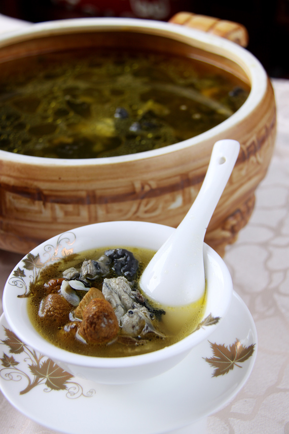 山珍土鸡汤滋味鲜美甘醇可口,富含粗蛋白、粗脂肪、粗纤维和维生素B1、B2、维生素PP等元素·